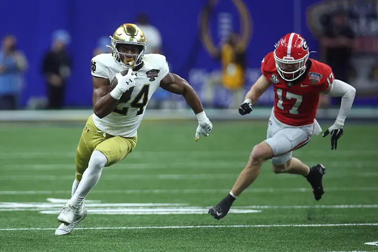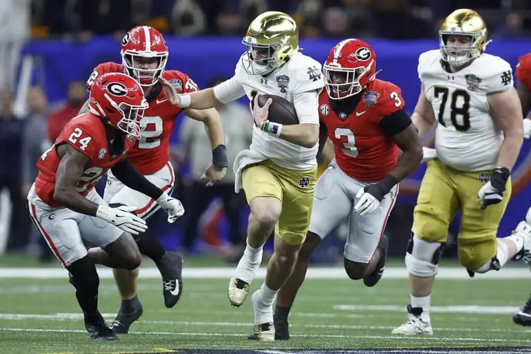Notre Dame used a swarming defense and 54-second scoring surge to top second-seeded Georgia 23-10 in Thursday’s Sugar Bowl, the last quarterfinal of the inaugural 12-team College Football Playoff. The seventh-seeded Fighting Irish (13-1) won a school-record 13th game — and their first major bowl since the 1994 Cotton Bowl — to advance to the Jan. 9 Orange Bowl semifinal against sixth-seeded Penn State.