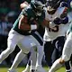 (T)he Eagles (4-1) blew a late 14-point lead and struggled offensively again in the second half, falling 21-17 at Lincoln Financial Field. Looking to get the passing game going, Jalen Hurts targeted DeVonta Smith and A.J. Brown often, as the two pass catchers combined for 13 catches, 157 yards, on 18 targets. The aerial focus took away from Saquon Barkley, who finished with just six carries for 30 yards, while adding three catches for 58 yards in the passing game.