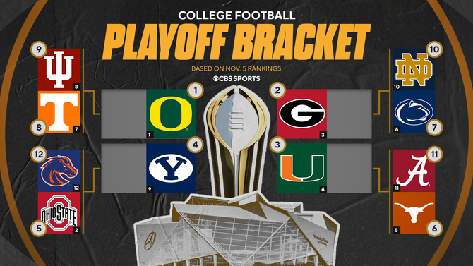 In these rankings, Big Ten foes No. 1 Oregon and No. 2 Ohio State claimed the top two spots. However, the Buckeyes pick up the 5-seed while the Ducks are projected to get the Big Ten’s auto-bid as conference champion and a first-round bye. That opens the door for No. 3 Georgia to pick up the 2-seed with No. 4 Miami and No. 9 BYU closing out the field at the top. Projected Group of Five champion Boise State slots at No. 12 both in ranking and seeding.