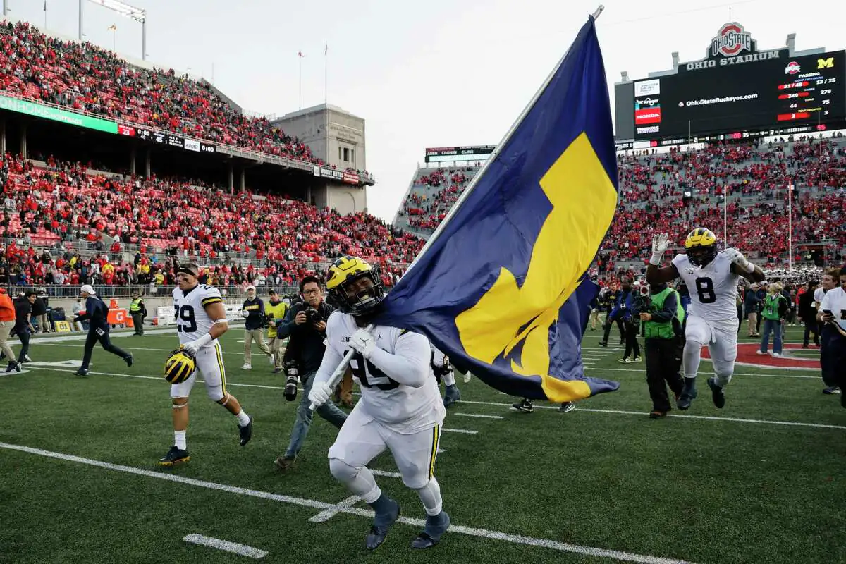 But this afternoon, before a disbelieving partisan crowd, the #3 Wolverines stunned the #2 Buckeyes 45-23, all but punching their ticket to their second consecutive College Football Playoff semifinals (assuming, of course, they can beat Purdue in next week’s Big Ten championshipn game). And as the AP’s Mitch Stacy reported, they did so convincingly: