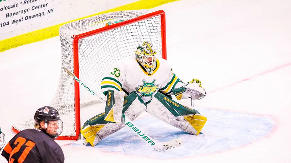 The Lakers are decided underdogs tonight. Geneseo, 21-3-1. is a top three national program and defending conference champions. The Lakers, 18-6-1 and not even in the Top Ten, lost two regular season games to them earlier this year. This had been billed as a rebuilding year, with 21 new players (2020-21 was lost due to COVID) including many who had never played any college hockey at all. Getting this far this year has been seen as a quite pleasant surprise. A competitive loss to such a quality opponent may still qualify the Lakers for another NCAA tourney invite.