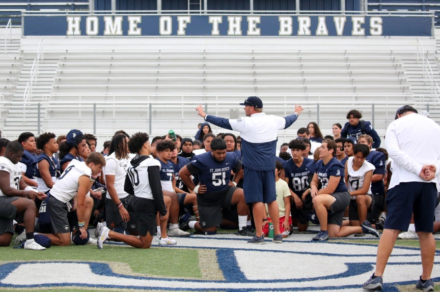 Well, that’s on them. As for St. John Bosco, they will merely be jetting to Allen, Texas to compete in an opening weekend inter-state tussle being held at a $60 million on-campus stadium in front of an anticipated crowd of more than 18,000. On an opening weekend when the ESPN family of networks will cover seven other such inter-sectional matchups ahead of the majority of college season openings. Because, you know, we can’t wait for football on TV.