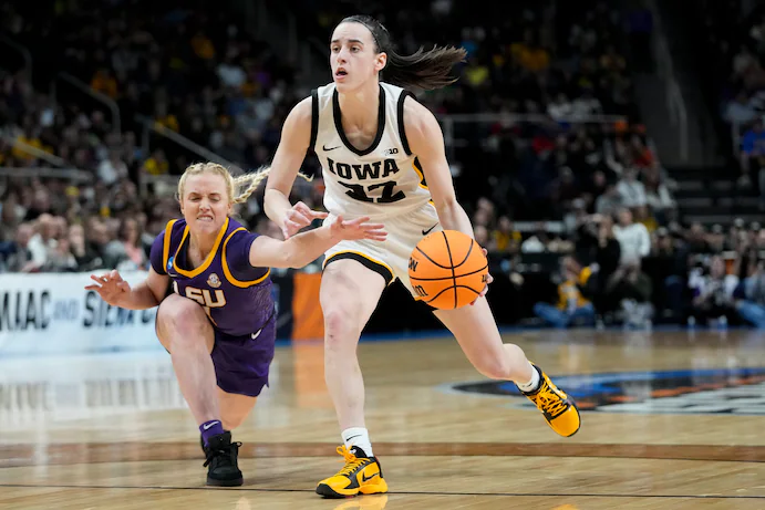 Caitlin Clark made nine 3-pointers and finished with 41 points and 12 assists as Iowa knocked defending national champion LSU out of the women’s NCAA Tournament with a 94-87 victory on Monday night, advancing the Hawkeyes to their second straight Final Four.