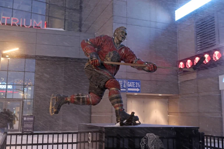 Heck, he even has a friggin’ statue–in full color, no less–that stands in front of the United Center, where today’s fans can spend hundreds of dollars to see a ragtag last-place team hope against hope Connar Bedard winds up in their laps this summer.