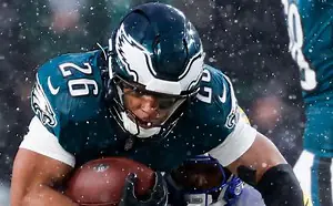 You could pick any number of MVPs for the Eagles in this one. Barkley, who remained the fulcrum of Philadelphia’s offense and put the Rams away late. Kicker Jake Elliott, who missed a pair of extra points but buried all three of his field-goal attempts through the difficult conditions. A defense that forced two crucial second-half turnovers, sacked Matthew Stafford five times and came up with a late stand to preserve the victory.