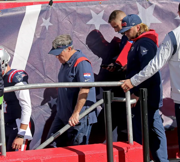 Belichick walked across the home turf, left with the frustrating task of shaking hands with New Orleans Saints coach Dennis Allen, who’d just beaten him and his team 34-0, the first time in the Belichick era that the Patriots were shut out at home with their starting quarterback (the only other shutout came in 2016 when Jacoby Brissett, the team’s third quarterback, played through a ligament tear in his thumb).